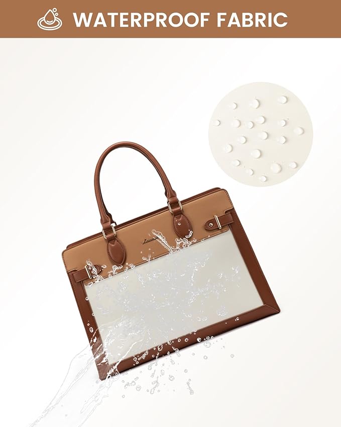- 【Stylish Laptop Bag】Crafted from waterproof and durable PU leather,this laptop tote bag,offering a chic and professional appearance, is water-resistant,anti-wrinkle,scratch-resistant,and wear-resistant,making it perfect for working women.