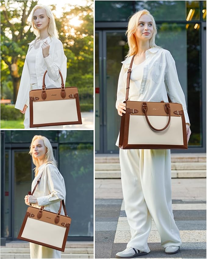 - 【Versatile & Practical】This laptop tote has an adjustable length shoulder strap that makes the computer bag to be a handbag, cross-body bag, and suitable for people of different sizes, making it suitable for a variety of occasions and perfect for work, travel, business meetings, and everyday use.