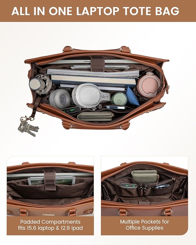 - 【Multiple Pocket Tote Bag】Features a dedicated padded laptop compartment for laptops up to 15.6 inches, an iPad pocket, a main compartment for daily essentials, side pockets for water bottles, tissues, or umbrellas.This tote bag for women keeps your belongings organized and easy to find!