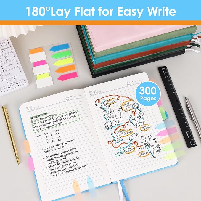 - Lay-Flat Design:Lay Flat design makes writing and reading easier. Also the hardcover notebook is designed with an elastic closure band to make it close tightly and protect the content.