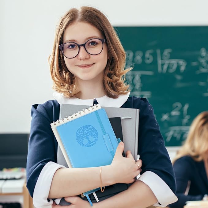 - Hardcover Leather Journal:The hardcover leather journal is A5 size, 5.7 x 8.3 inches, 9/32 standard college ruled. The cover is made of waterproof and stain-resistant faux leather, which is soft and comfortable to the touch.