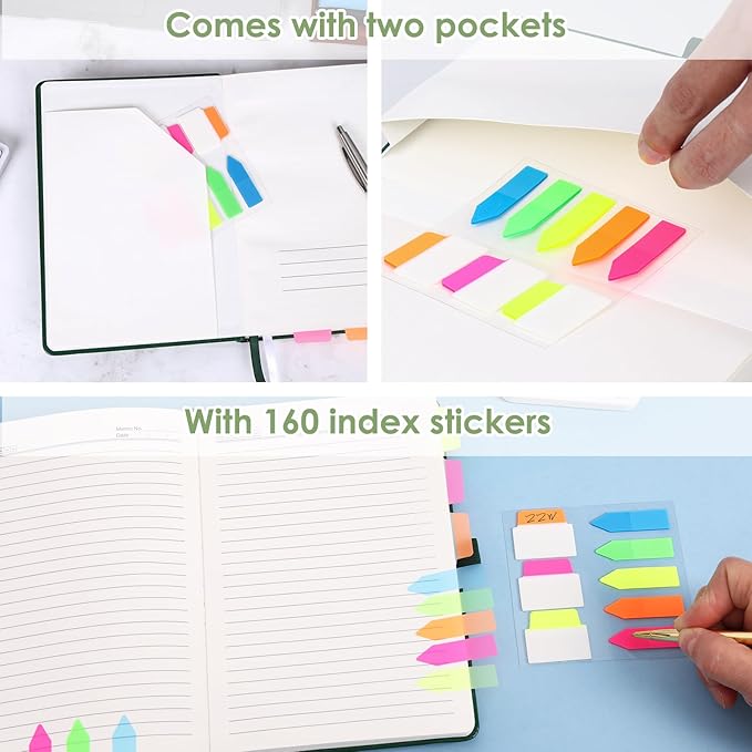 - Value of Money:This leather notebook with150sheets/300pages has 1 pen holder, 2 ribbon bookmarks, one paper pocket on the open cover, one expanding pocket on the back cover, and an extra 160 index stickers to meet your needs.