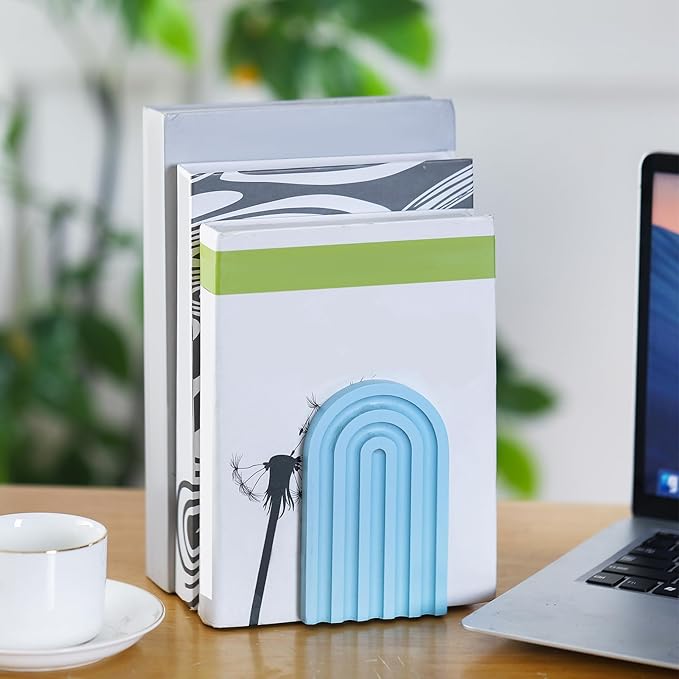 - Bohemian and Minimalist Design: our non slip bookends are designed with rainbow shapes and 4 beautiful color systems, each with exquisite carvings, which can add elegance, simplicity and natural style to your bookshelf, decorate your office and study room