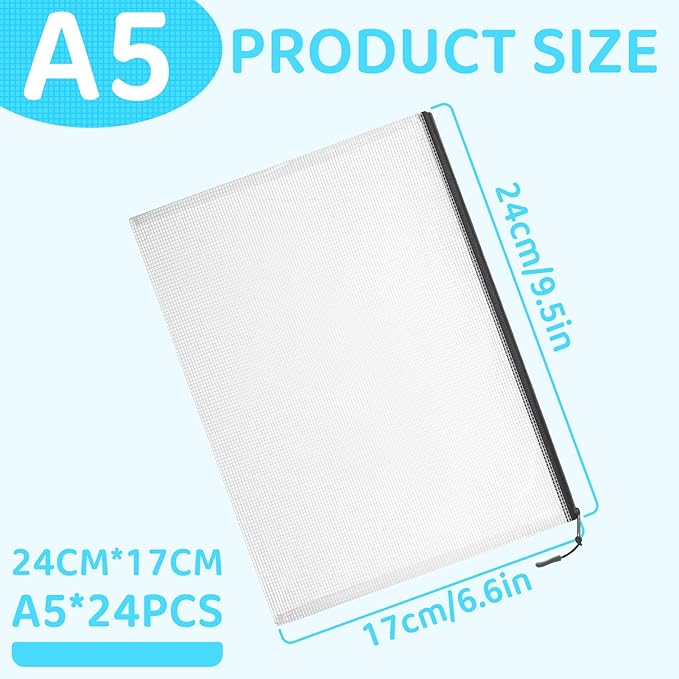 - Package Included: You will get a set of 24 packs of black A5 mesh zipper pouches that will help you organize your daily life and work clutter. Help you easily keep track on your items