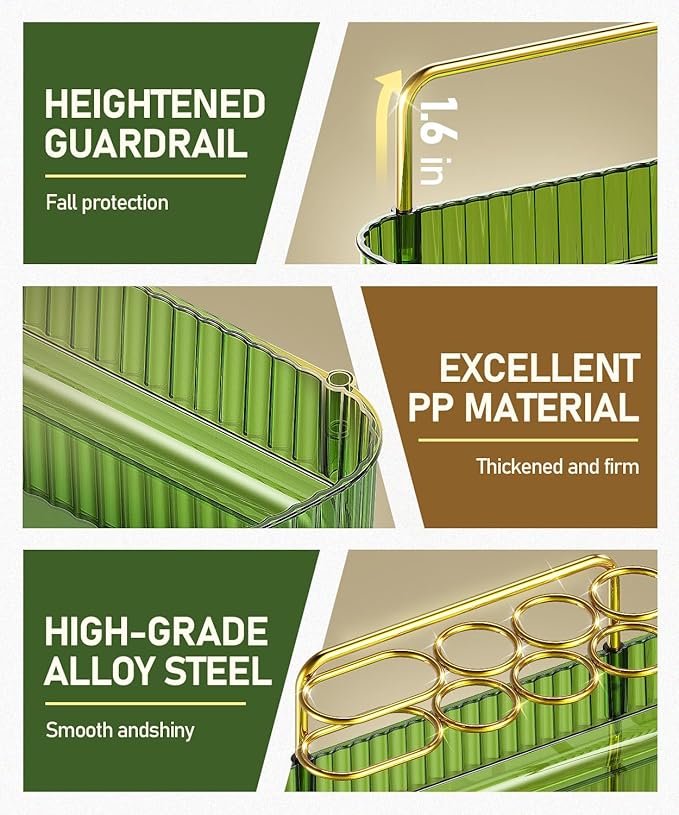 3-Tier Corner Bathroom Counter Organizer Makeup Cosmetic Storage, Tool-Free Installation Acrylic Vanity Shelf, Skin Care Organizer Perfume Tray for Countertop Bathroom, Dresser, Kitchen (Green)