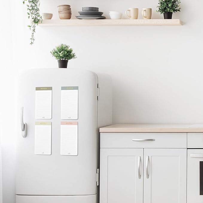 - Set of 4 Note Pads - Perfect Size: Each 8x3.9 IN magnetic to do list notepad is large enough to make everyday stuff easier without taking up too much space on your fridge! Enjoy ample space with each grocery list notepad providing 50 easy-to-tear-off sheets