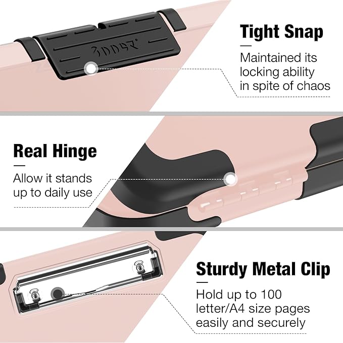 - Unrivaled Durability & Ultimate Protection: Reinforced with rubber corner bumpers and crafted from high-strength plastic, this clipboard is built to endure the toughest environments, preventing accidental drops and impacts. With a real hinge and tight snap closure, it ensures unparalleled durability.