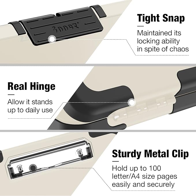 - Unrivaled Durability & Ultimate Protection: Reinforced with rubber corner bumpers and crafted from high-strength plastic, this clipboard is built to endure the toughest environments, preventing accidental drops and impacts. With a real hinge and tight snap closure, it ensures unparalleled durability.