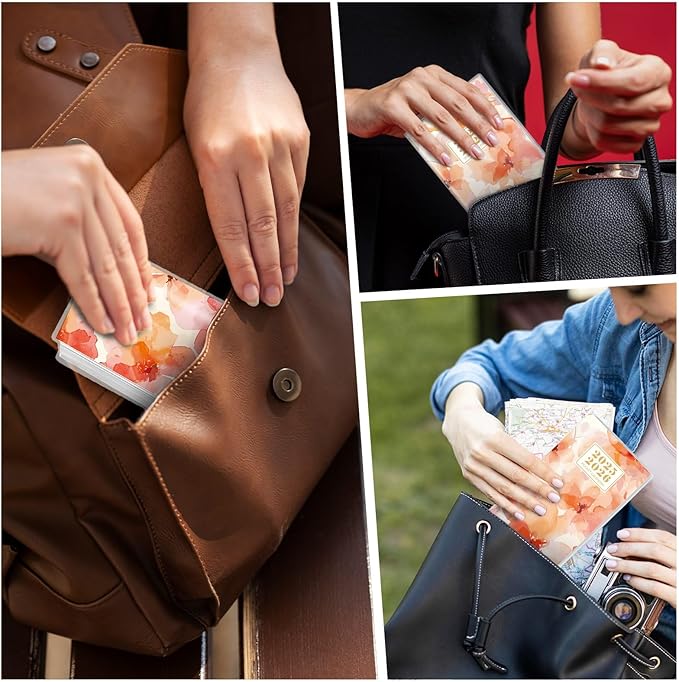 - Refined Elegance: This yearly pocket calendar boasts a waterproof and dustproof PVC cover embellished with sophisticated floral patterns. Its minimalist inner page design combines practicality with aesthetic appeal, enriching your daily life and work while enhancing the overall user experience.