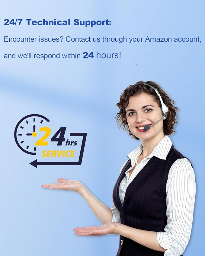 - 24 Hour Technical Support: If you encounter any issues, please get in touch with us through your Amazon account by navigating to Your Orders and finding your order. Then, click Contact Seller. We will respond to all emails within 24 hours