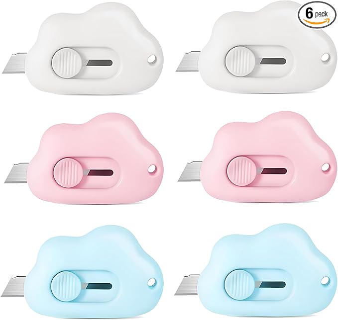 Mini Cloud Box Cutters Retractable Cute, 6 Pcs Small Utility Knives, Portable Letter Opener Slide Open with Keychain Hole, for Office School Stationery, Cutting Box Envelopes Papercutting (6)