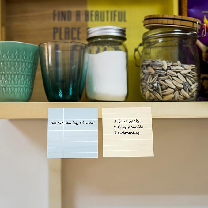 - 【Wide Use】: These sticky notes can be used to write notes, memos, plans, shopping lists, to-do lists, etc. to help remind you to do important or trivial things that are easy to forget; you can stick them to many items with smooth and clean surfaces, such as books, notebooks, computers, whiteboards, windows, walls, doors, refrigerators and so on.