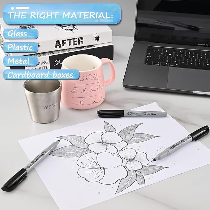 Permanent Markers, Ultra Fine Point, Black, 16 Count, 0.4mm, Fine tip permanent marker set, quick dry, waterproof, fading resists, durable, marks on paper, glass, ceramic, plastic, wood, rock, metal