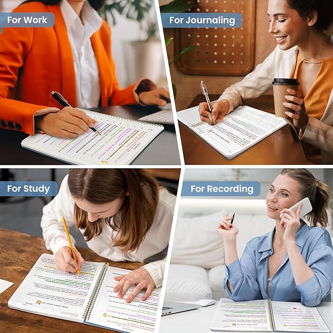- Large A4 Spiral Notebook: Measuring 8.5" x 11" with standard 7mm college-ruled lines, this large A4 notebook offers ample space for detailed note-taking, journaling, and task management. Its spacious pages are perfect for capturing ideas, organizing thoughts, and managing projects—whether at work, school, or in your home office.