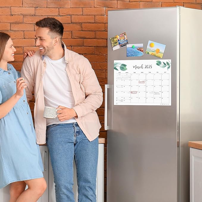 - Premium Material: Made of extra thick paper that prevents annoying ink bleed through. The strong magnet allows you to hang easily your magnetic calendar on your fridge