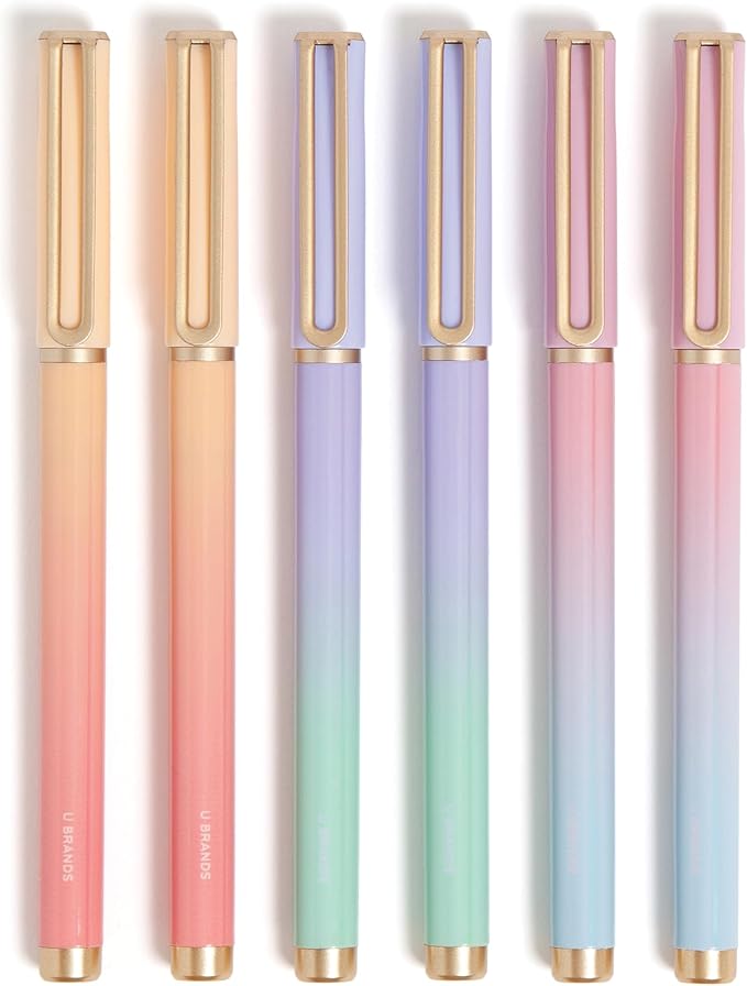 U Brands Catalina Felt Tip Pens, Set of 6, Lucent Dreams, Gold Details, Medium (0.7 mm) Point, Black Ink