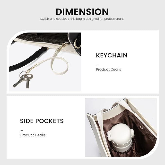 • Multi-Compartment Organization: Featuring a thoughtful multi-compartment design, the work bag includes double side pockets, a padded laptop and iPad compartment, slip pockets, pen slots. Ensures effective organization, making it easy to keep items in order