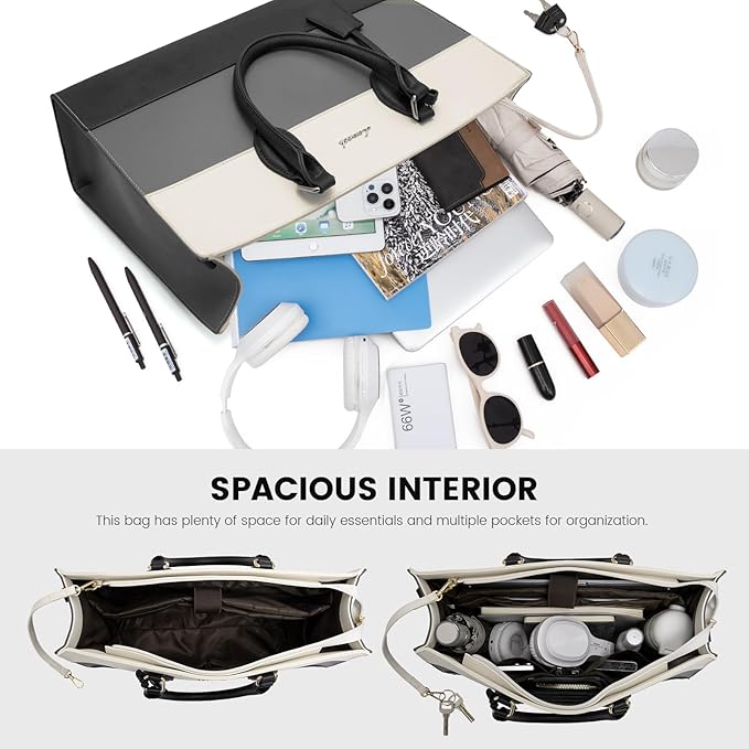 • Versatile & Convenient Usage: With dimensions of 16.34*11.8*5.9 inches, the laptop tote bag is spacious enough to accommodate a 15.6-inch laptop and various daily essentials