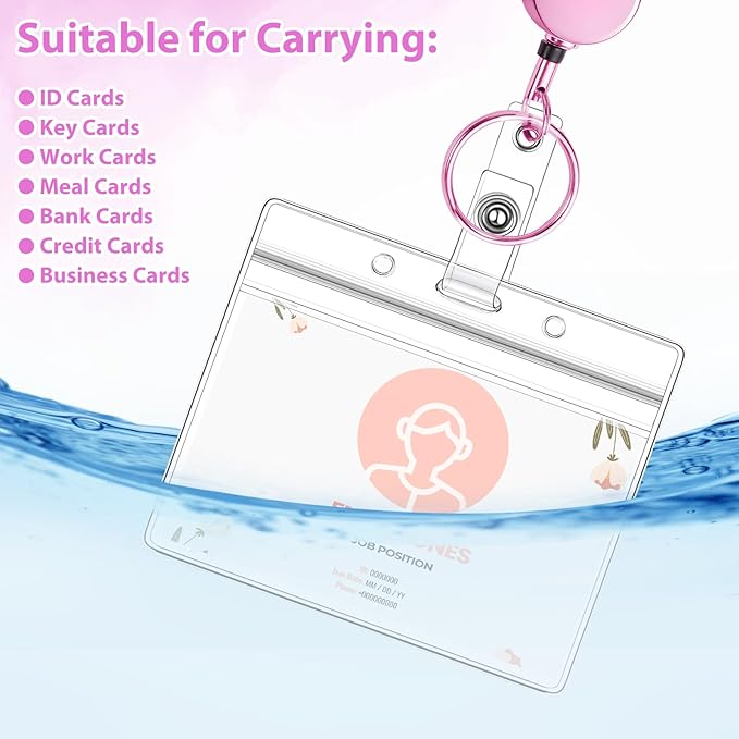 - 【Value Combination】3 Pcs beaded badge lanyards, three colors of gold, pink, purple; 3 pcs retractable reel clip; 6 pcs waterproof badge holders, horizontal and vertical two styles, easily meet your different needs