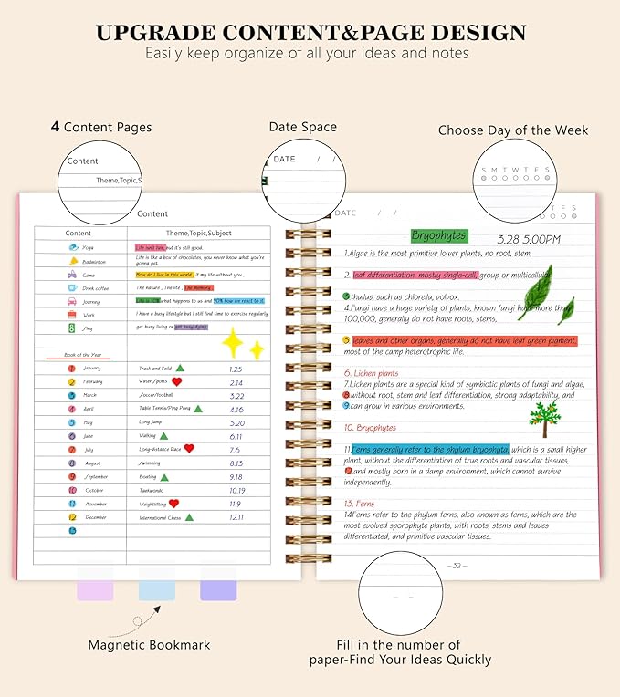 - 【360 Pages Thick Notebook Journal】Each lined journal 360 pages, offering enough space to write in.The new page design allows you to fill in the page numbers yourself. By using a notebook with page numbers and a 4-page blank table of contents, you can jot down important notes from various pages and note them in the front of the journal for easy and fast reference. Each page has a day and day of the week selection to help you keep track of the date