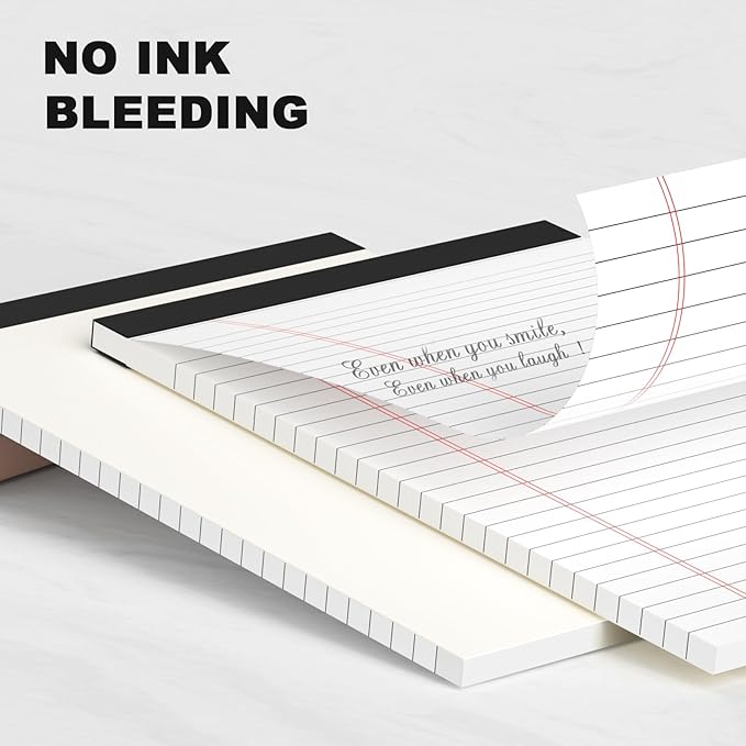 - Legal Pads 5 x 8 Inch feature premium-weight 80gsm thick paper with black lines and double red margin lines, providing ample space for your notes. The smooth, yellow paper allows your pen to glide across the page, resisting ink bleeding and show-through. These notepads are thicker than average for a luxurious writing experience with minimal ghosting.