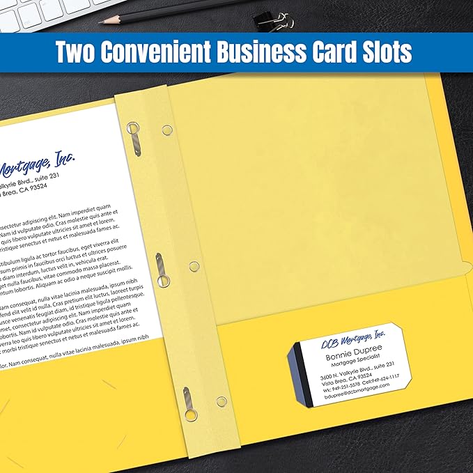 - 2 FLAT POCKETS: Each folder features two spacious 3.75" pockets to hold loose papers and includes two business card slots for easy access to contact information or personalized inserts.