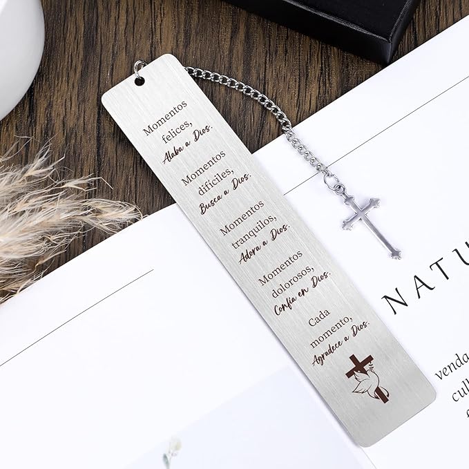 - Spanish Religious Bookmark Gifts: The Spanish bible verse bookmark is engraved with inspiring Spanish words from bible, size 13.0*2.6 cm/5.1*1.0 inches, comes with a beautiful box, perfect as a practical gift. The bookmark can be a gift for Christians, religious gifts for women friends, gifts for family members, best gift for book lovers, inspirational gifts for women religious, best gift for church pastors, a gift for church staff, Christian dad gifts and so on.