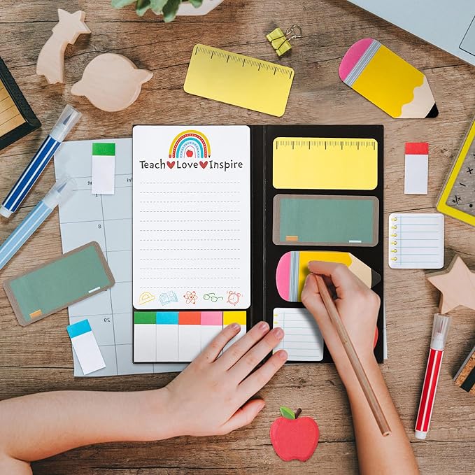 - Unique Design: Refuse to be single, we provide a variety of interesting sticky notes! The cover of the set and the sticky notes inside are designed with teacher theme, the patterns on the notes are cute and bright color, believe that you will love it