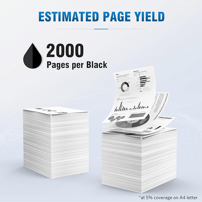 - High Page Yield for Long-Lasting Printing: Experience exceptional value with up to 2,000 pages for the black ink cartridge (based on Letter A4 size at 5% coverage)