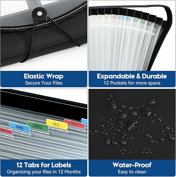 - Efficient Organization: Stay organized with our premium accordion file folder featuring 12 pockets and 12 tabs. It provides ample space to categorize and store your important documents, ensuring easy access and efficient organization.