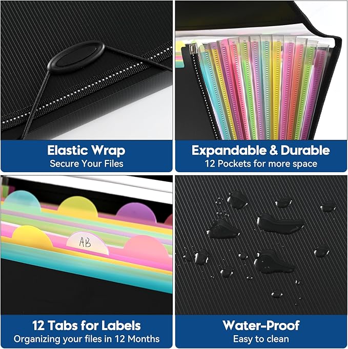 - Efficient Organization: Stay organized with our premium accordion file folder featuring 12 pockets and 12 tabs. It provides ample space to categorize and store your important documents, ensuring easy access and efficient organization.