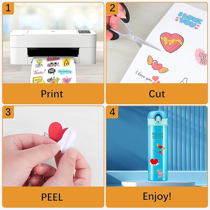 - DURABLE AND WATER RESISTANT PAPER: Our waterproof sticker paper dries quickly after printing and is made from durable materials, so you can be confident that your designs are safe and long-lasting. The adhesive side of the inkjet sticker paper is also strong, so your stickers will last a long time