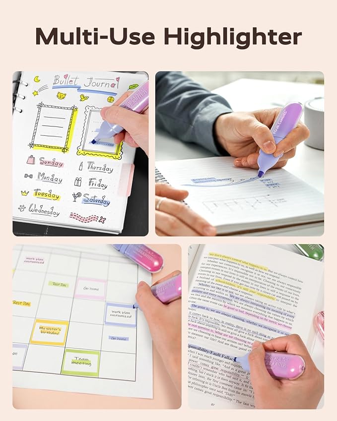 - All-in-One Bulk Pack: This pack comes with 8PCS pastel colors highlighters with a unique range of assorted colors, which gives you a personalized and stylish options