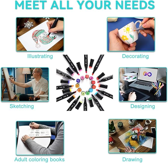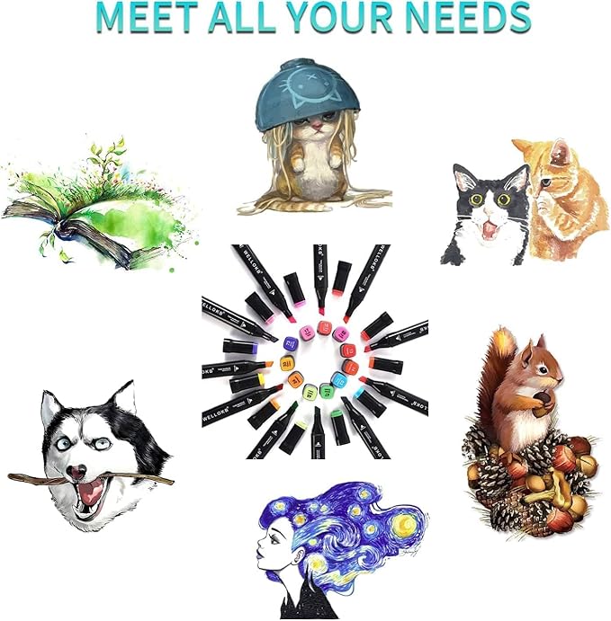 - Updated Version for No Bleeding: The new WELLOKB alcohol markers set includes an ink-resistant pad to prevent bleeding through regular coloring paper. Perfect for adult coloring books, these dual-tip markers allow for smooth, clean coloring without mess or smudging.
