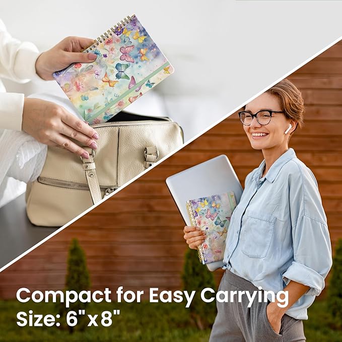 Pretty Cute Lined Spiral Journal Notebook for Women, Aesthetic College Ruled Notebook for Work & Note Taking, A5 Hardcover Journal for Writing, 140 Pages, Colorful Butterfly