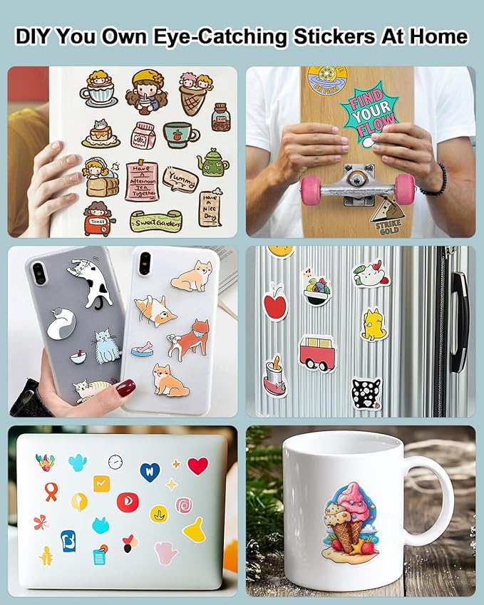 - Jam Free and works with Cutting Machine - Indulge in unparalleled printing convenience with our sticker paper, which seamlessly integrates with a diverse range of laser, inkjet printers, and even the Cricut Maker. Anticipate prints that are crystal clear and sharply defined, free from curled edges or problematic paper jams. With its impressive color vibrancy, your creations will sparkle, bringing every intricate detail to life. Trust our inkjet printer-compatible sticker paper to bring your unique designs to life with stunning accuracy and precision.