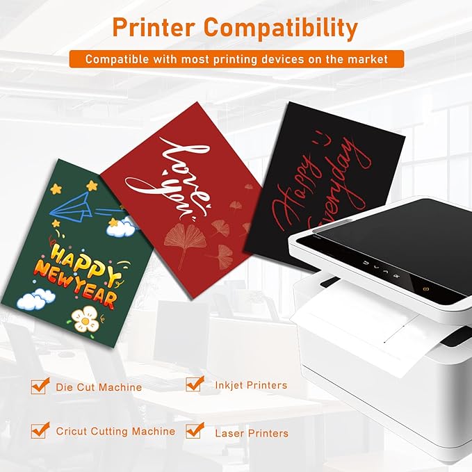 - ▶Printer Compatibility:our thick printer paper card stock is compatible with most types of laser printers, inkjet, die-cutting machines, and cricut cutting machines. Please ensure that your printer can print on 200gsm before ordering