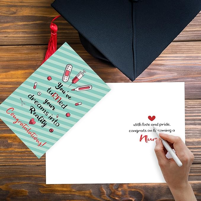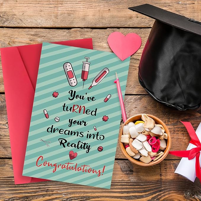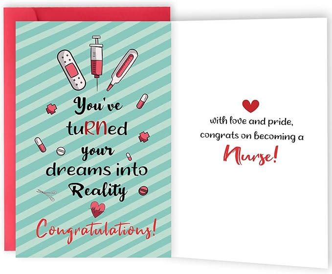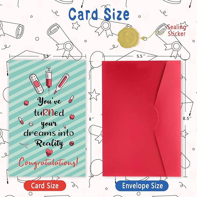 - Nurse graduation card folds to 8 x 5.3 inches with a red envelope and closure sticker, and is wrapped in clear cellophane
