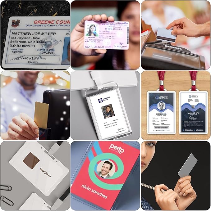 - Applicable Materials: Suitable for a variety of PVC cards, such as Employee card, ID card, social security card, work badge, smart card, membership card IC card, work cards, conference cards, exhibition cards, guest cards, work number plates, job cards, etc..