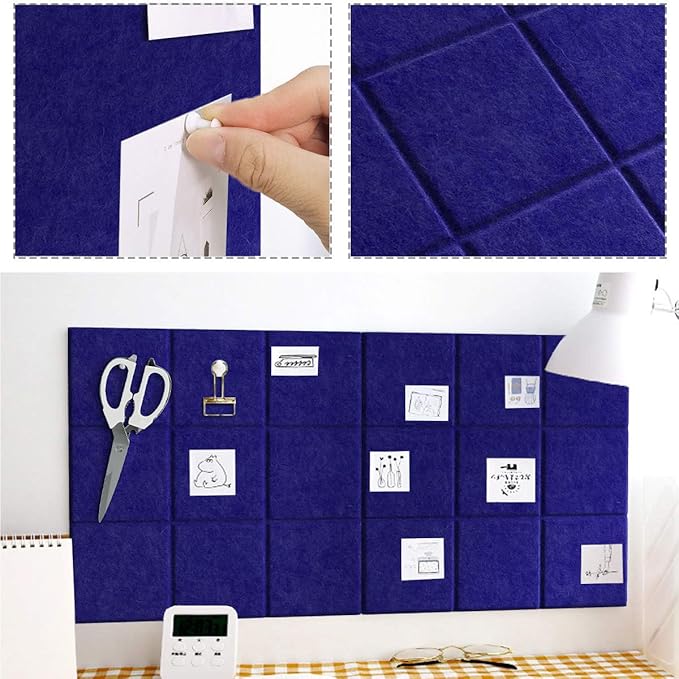 Large Felt Board Tiles for Wall with 30 Push Pins, 11.8"x11.8" Pack of 6 Pin Board Notice Boards for Home Office Kitchen, Bulletin Board Wall Tiles for Photos Memos (Dark Blue, 6 Pack)