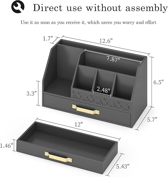 - Small Drawer organizers :This bamboo desktop file organizer has a large capacity and different storage areas.Additional storage for your files, letters, magazines, pens, stamps, paper clips and more for your office desk organization! Also you can use the drawer as a key holder or Pencil holders.