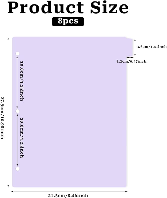 - 【Packing List】 The package contains 8 pieces of A4-sized three-hole notebook split pages in purple color. The color is fresh and can be used in various occasions.