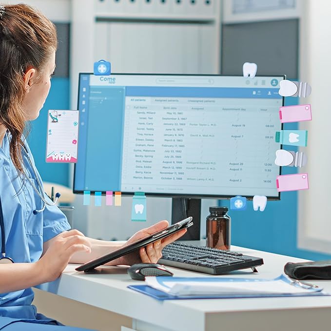 - Dentist Sticky Notes: You'll get dotted line sticky notes, tabbed sticky notes, 3 types of dentist elements sticky notes, 1 type of teeth sticky note, and 1 type of medical bag sticky note. There are 50 sheets of each type, totaling 550 sheets, enough to meet all your needs