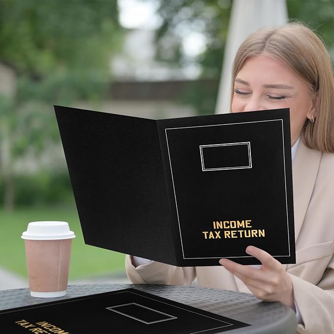 - Exquisite Design for Experience: the design of the folders with pockets bulk speaks volumes about their quality; Our black tax folders feature a practical design, saving you from complicated setup; The folder cover has Income Tax Return printed in gold; Easy to use and clearly laid out, allowing you to access your documents with ease