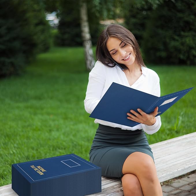 - Exquisite Design for Experience: the design of the folders with pockets bulk speaks volumes about their quality; Our blue tax folders feature a practical design, saving you from complicated setup; The folder cover has Income Tax Return printed in gold; Easy to use and clearly laid out, allowing you to access your documents with ease