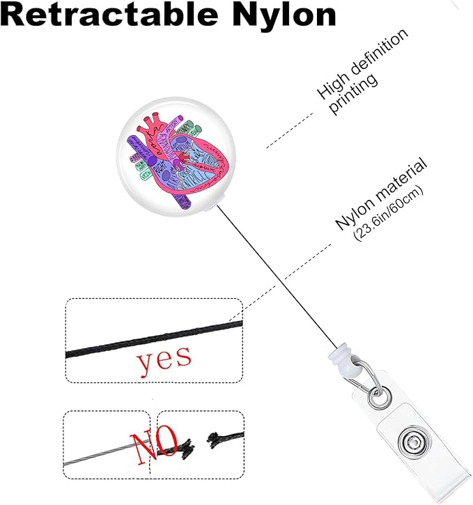 Heart Badge Reels Holder Retractable with ID Clip for Nurse Name Tag Card Nursing for Doctor Teacher Student Employee Office Medical Work