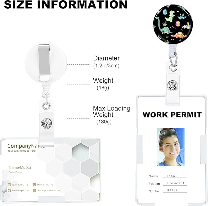 Cute Dinosaur Badge Reels Holder Retractable with ID Clip for Nurse Name Tag Card Nursing for Doctor Teacher Student Employee Office Medical Work