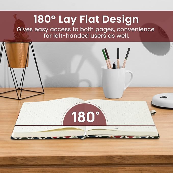 - Lay-Flat Design for Seamless Writing: The 180° lay-flat binding makes it effortless for both left- and right-handed users to write, draw, or sketch without any interruptions. With a perfectly flat surface, this notebook enhances your creative flow on any surface.