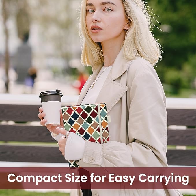 - Portable Size with Handy Extras: Sized at 5.7"x8.6", this medium A5 notebook is compact enough for easy carrying while still providing ample space for your creativity. The faux leather cover, expandable inner pocket, ribbon bookmark, and pen holder offer style and practicality for daily use.