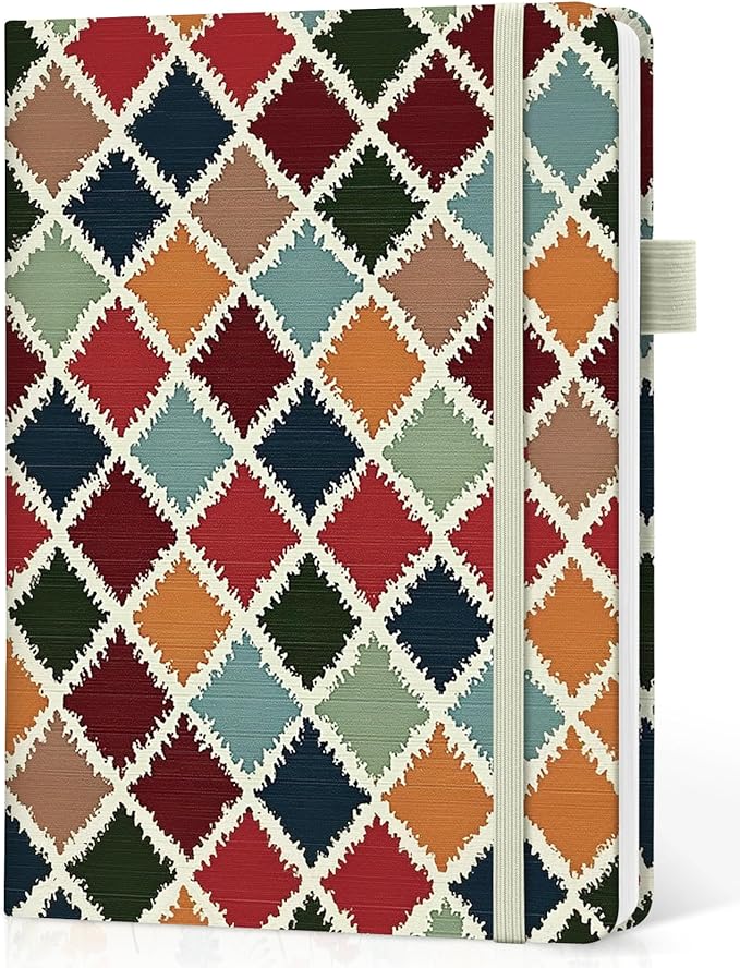 Bullet Dotted Journal Notebook for Women & Men, Hardcover Leather Journal for Writing, A5 Bullet Journaling Notebook for Work & Sketching, Perfect for Office School Home Supplies, 160 Pages, Retro Argyle